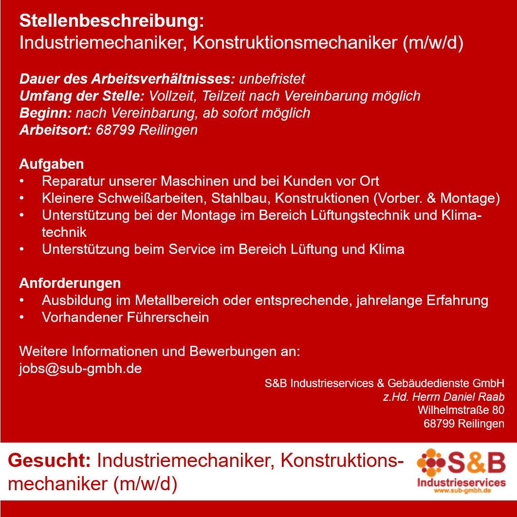 RNJ-2023-0007: Industriemechaniker, Konstruktionsmechaniker (m/w/d)
